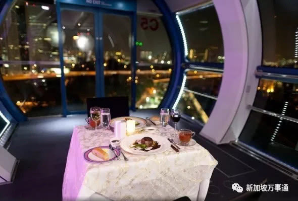 那是你不知道其实新加坡摩天轮有另一种浪漫的打开方式!一边吃着美食一边品著美酒~一边看着外边美丽的夜色!这一餐饭吃的跟外面的西餐厅价格也差不了多少!但逼格一下就上去了!