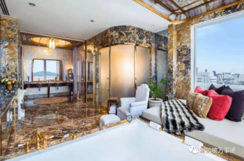 新加坡丽思卡尔顿美年酒店,与金沙酒店仅一河之隔。它位于32楼的丽思套房,是这个五星级酒店的皇冠上的明珠。