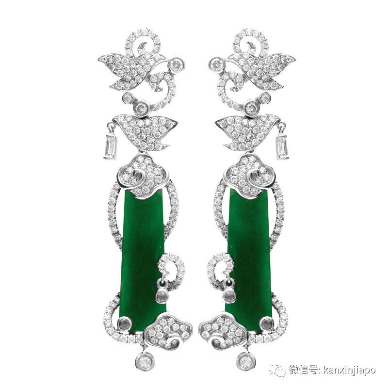 这款名为“翱翔”的翡翠钻石耳坠,戴在耳朵上摇曳生姿,乍一看就觉得完全是从清宫皇室中走出来的啊!