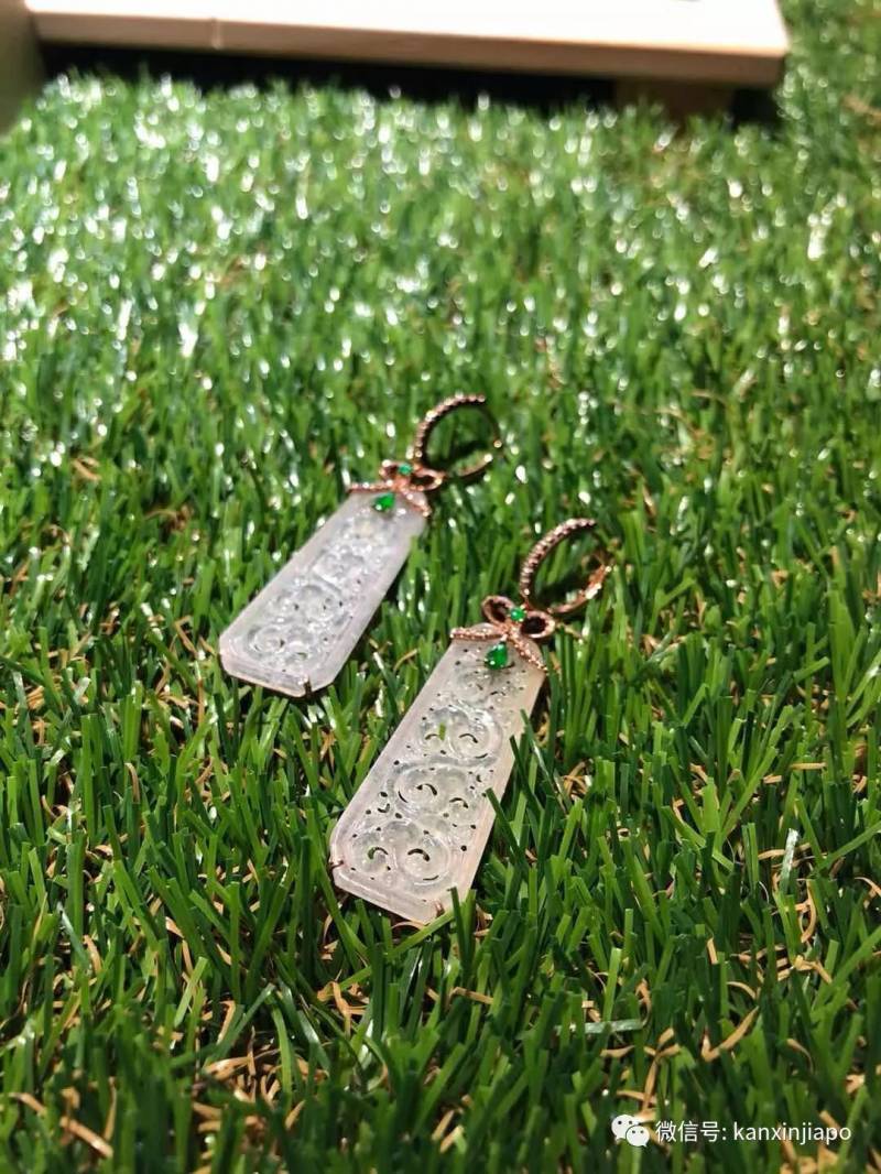 透明的冰翡翠上雕上精致的花纹,一点点绿色的翠点缀,看起来高贵典雅,这副耳坠一戴上,分分钟就觉得自己是宫里头的小主了有木有?