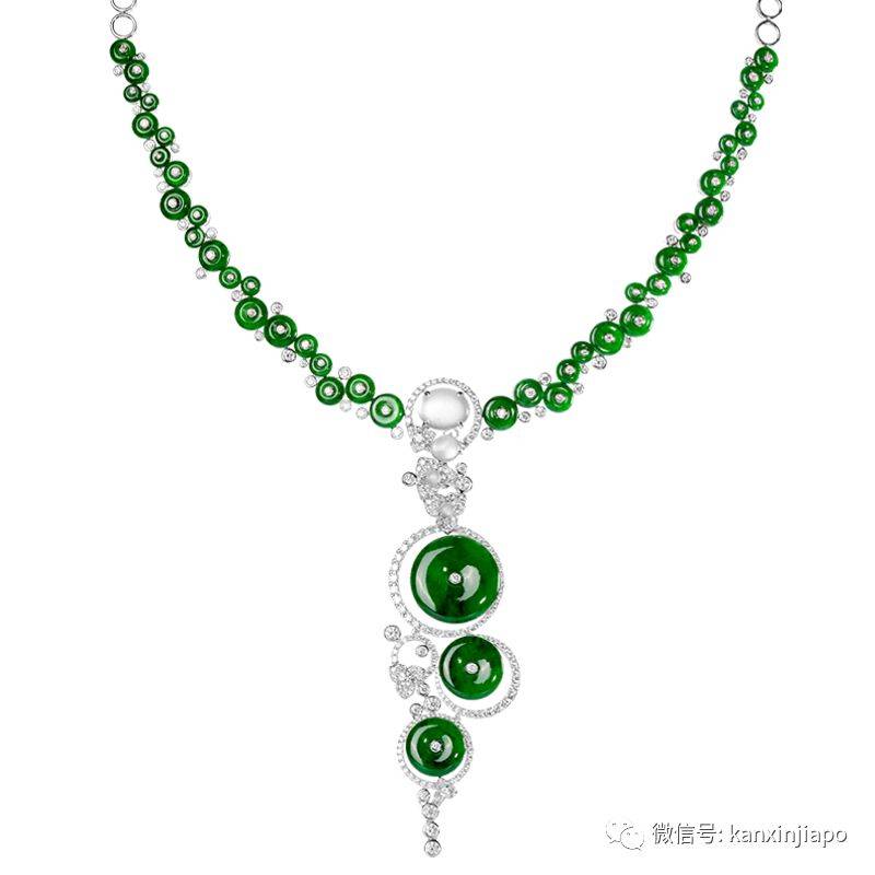 名为“云花”的这款翡翠钻石耳坠,是很符合南洋审美的,毕竟在讲究风水的南洋,带着吉祥寓意的祥云,向来格外受青睐。