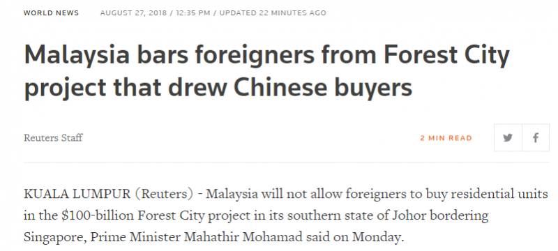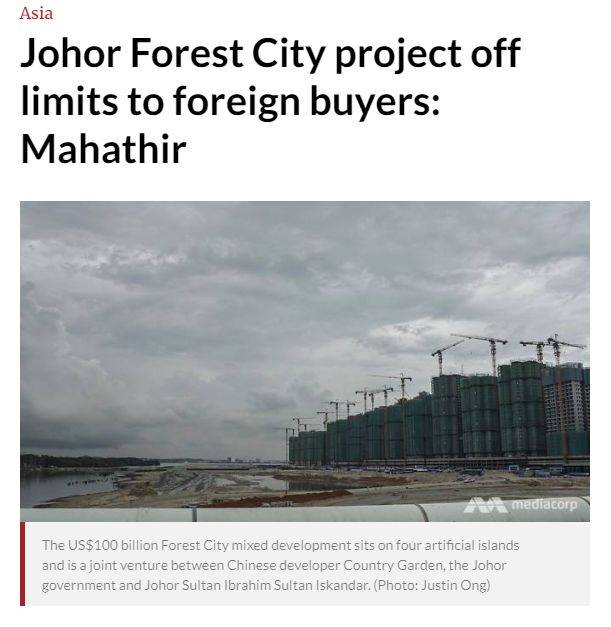 因为,有很大可能上台的马哈迪,对于森林城市一向非常不友好,甚至说大量的外来移民会让伊斯干达地区“独立”。