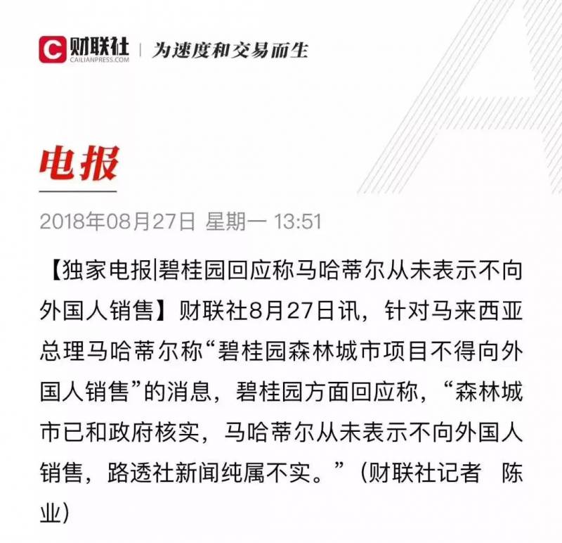 马哈迪去中国见了两个企业家,一个是马云,另一个就是碧桂园的杨国强。而且,会面完了之后,杨国强就宣布:
