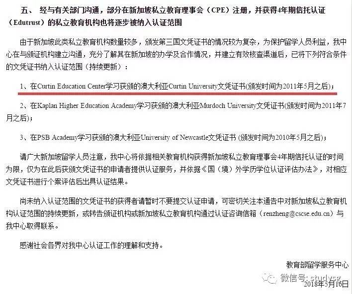 继今年3月澳洲詹姆士库克大学新加坡校区颁发的学历获得中国教育部认证!越来越多的新加坡私立学校的学历课程同样被认证!