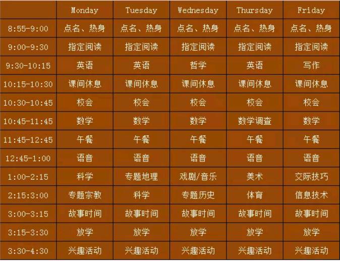 课程科目多种多样,除了英语、数学、科学等“主课”外,还有戏剧、音乐、交际技巧课程,此外还有阅读、故事时间等活动。