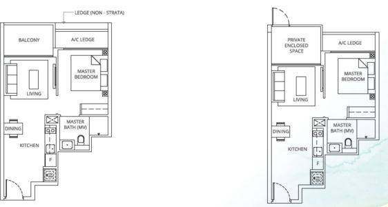 一卧室,合11套,套内面积44平方米(474平方尺)至55平方米(592平方尺),整套售价从S$760,000元起(尺价S$1,620起)。
