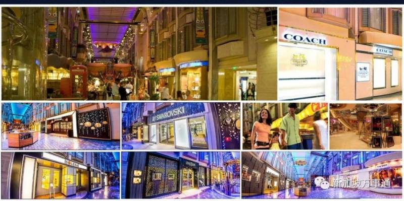 两侧各式琳琅满目的精品店和免税店品牌齐全,令人目不暇接,让人仿佛置身异国小镇,也是邮轮史上第一条购物大街。