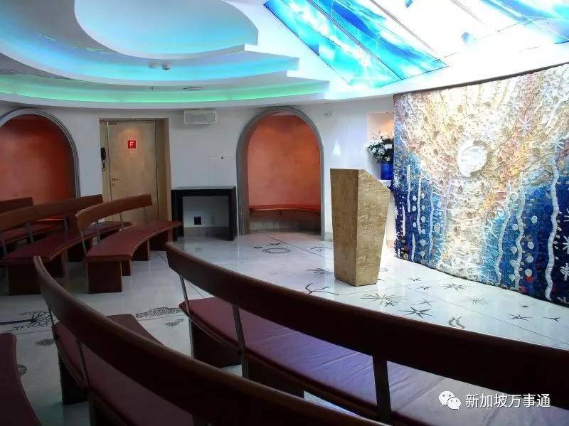 更值得一提的是,邮轮顶层甲板上还拥有亚洲第一座海上教堂!