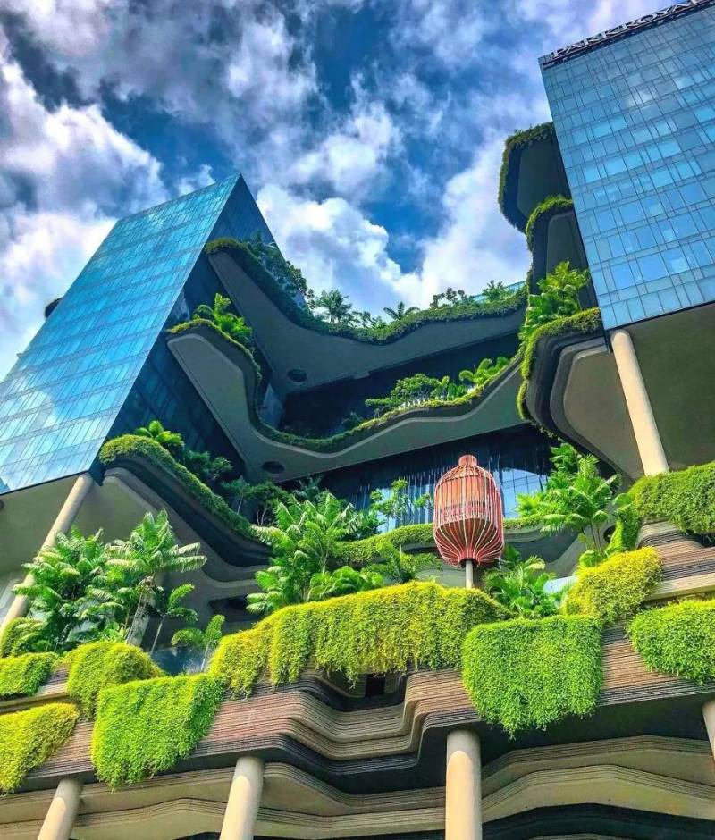 你把热带雨林搬进建筑,披上植被外衣的建筑,俨然一座座山峰。