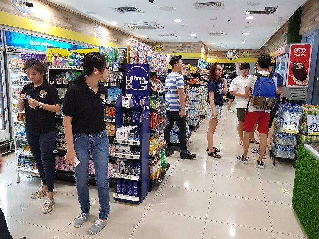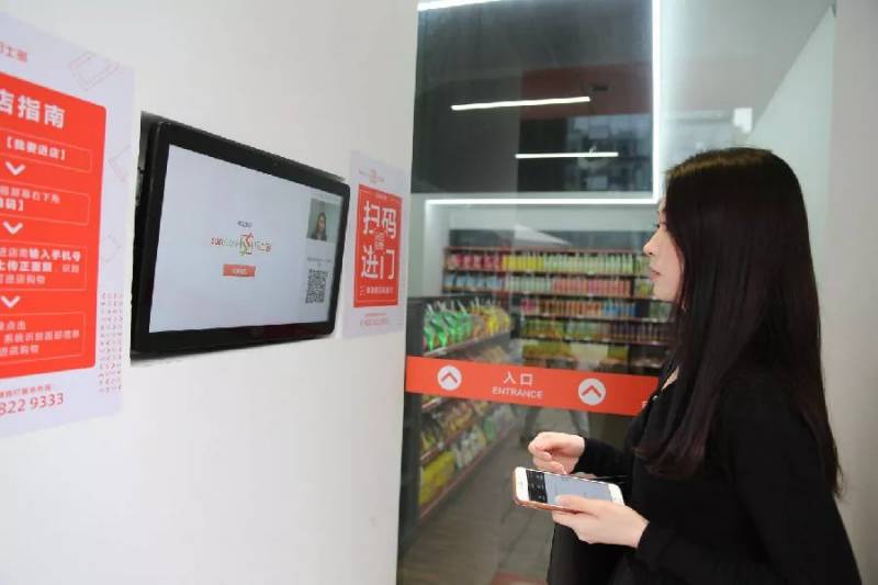 顾客进入无人超市中
