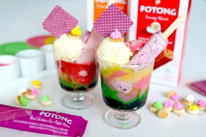 碎冰上加了红豆、果冻、甜玉米和棕榈籽