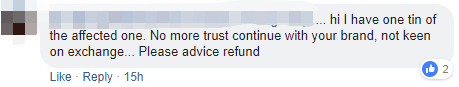 “我买到了一罐是受影响的批次。再也不相信这个牌子了,对换货没有兴趣,直接退款吧。”