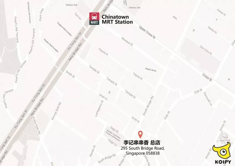 (紫线Chinatown A出口,直行100米,马路斜对面 – 佛牙寺正对面)