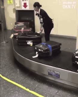 还会有专门的工作人员在取行李的地方,小心的接住行李箱…