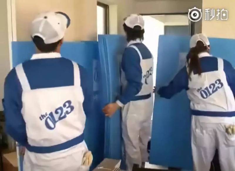 之后,他们会在墙壁上和地板上,都铺上泡沫防护板。