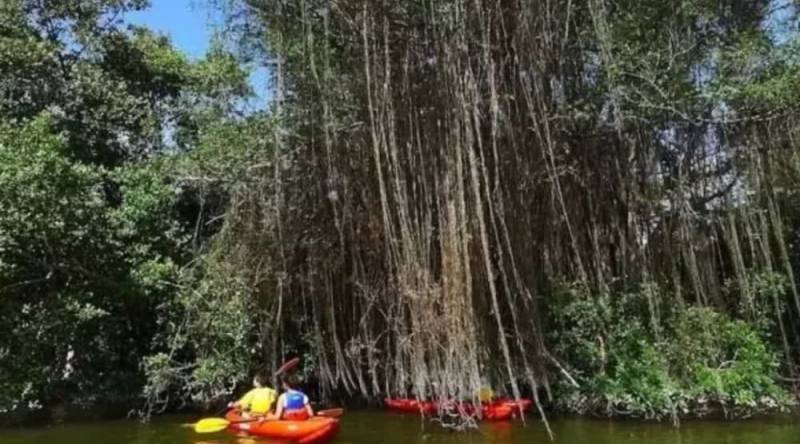 泛舟穿行于热带雨林中,体会红树林的静谧。这样有趣的画面,好像只在探索类纪录片里看过。