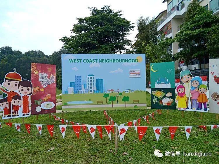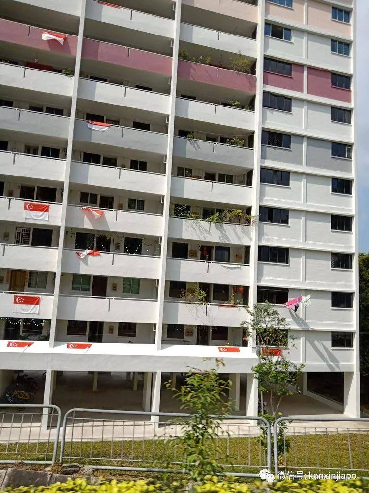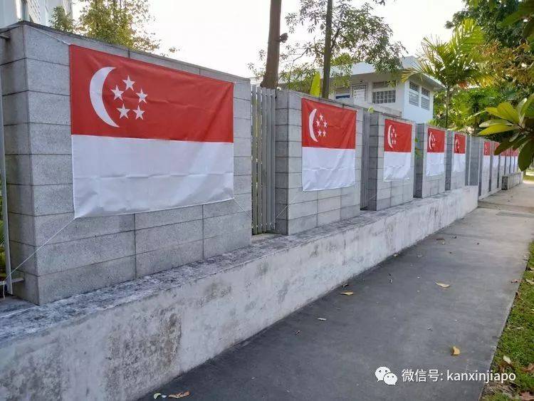 新加坡人很爱国,许多居民家外面自发的挂起了国旗。