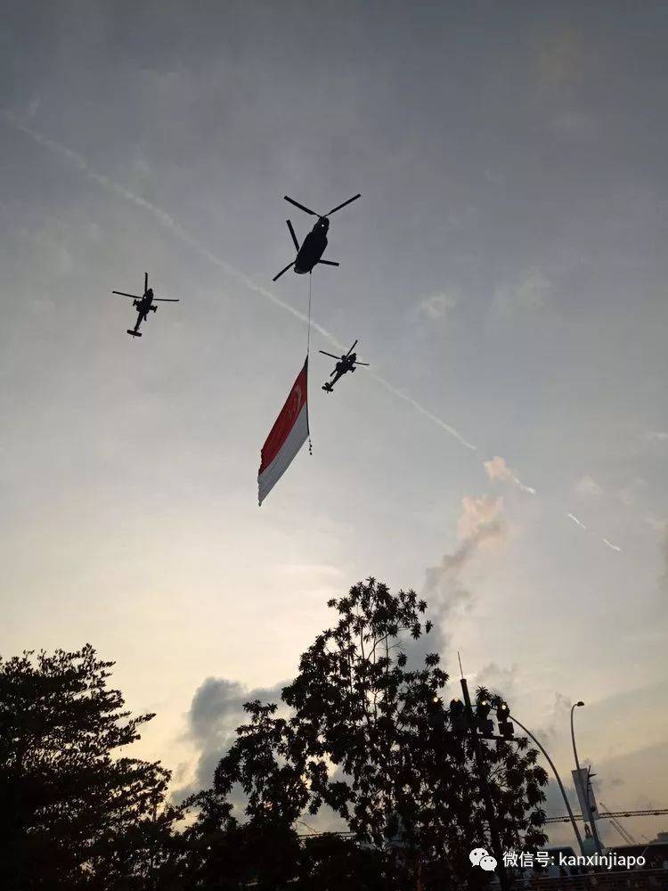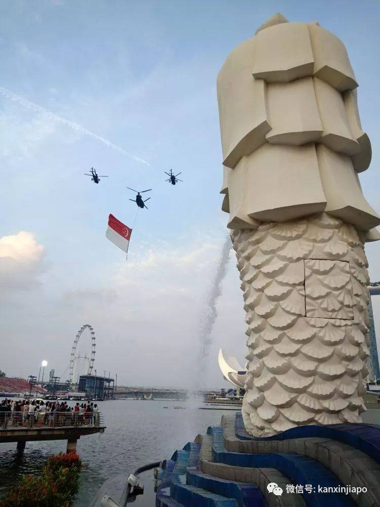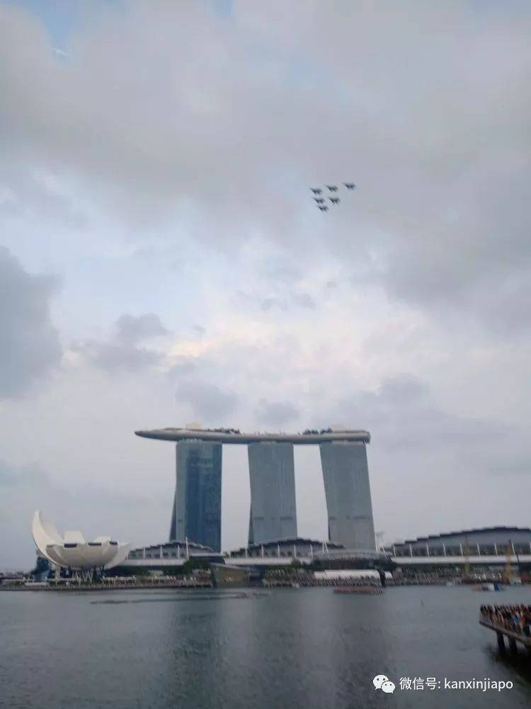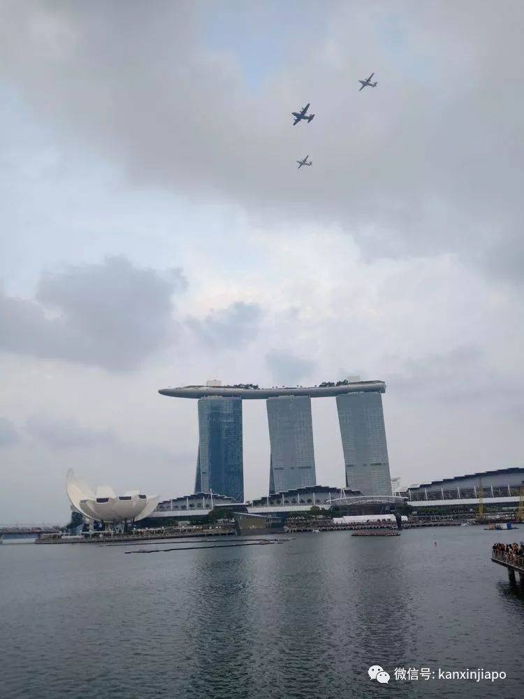 我们来的时候恰逢新加坡举行53周年国庆预演,为了助兴,出动了陆海空三军参加,包括直升机、战斗机、运输机等多种机型,还有空中跳伞、分列式阅兵表演等,场面甚是宏大。