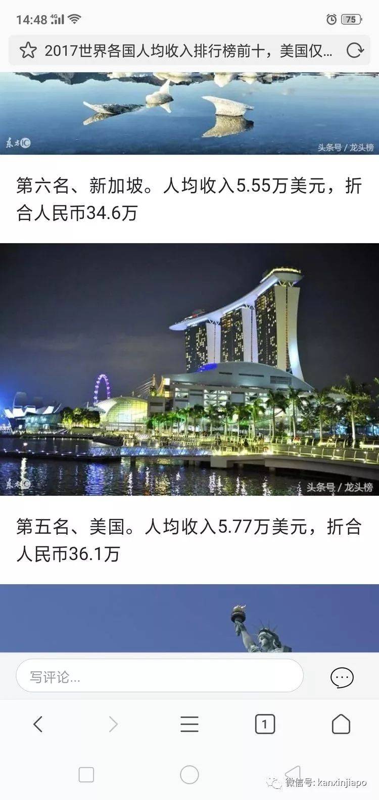 新加坡是出名的富裕国家,2017年人均年收入折合人民币约34.6万元,排全世界第六位。