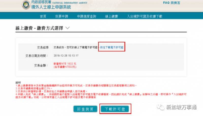 完成缴费后,你会收到一封email通知,接着,你只需要再次登陆网站首,并点击【入出境许可证及收据下载】,下载许可证和收据即可!