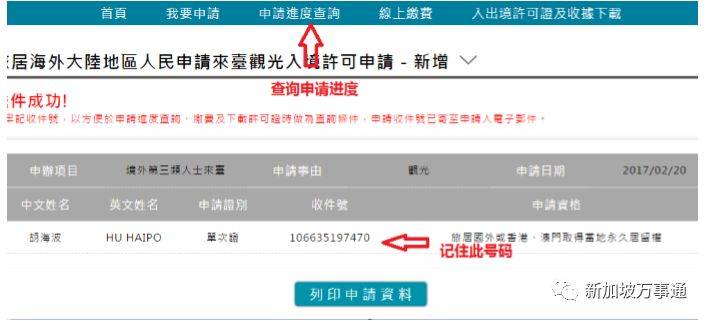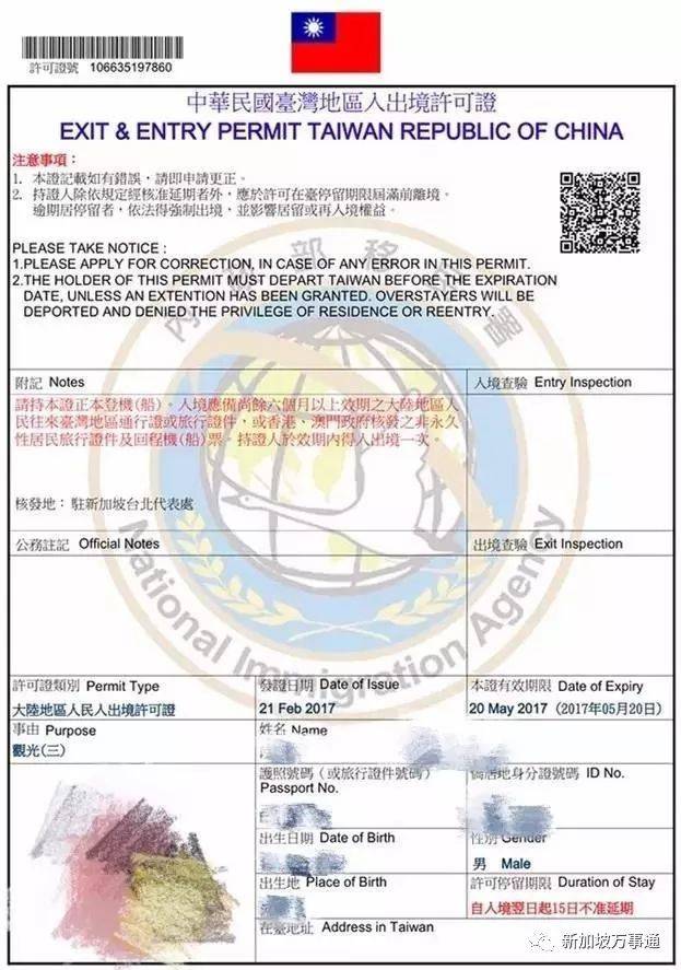 持有中国护照在新加坡办理申请的入台证,分两种类型: