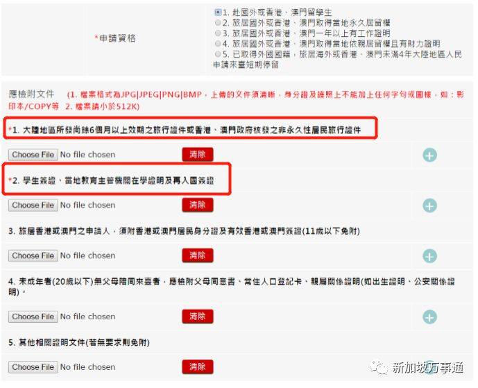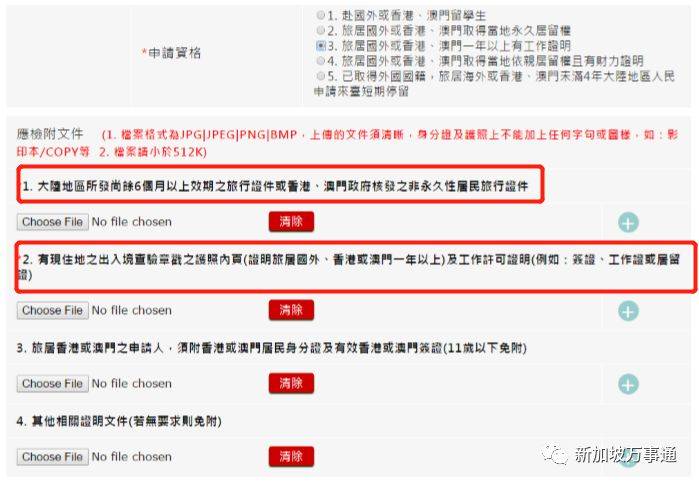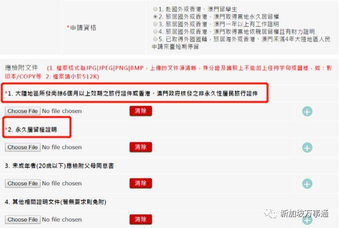 陪读及家属准证申请所需附件:1. 护照扫描件 2. 工作准证及入新的印章,证明在新有呆满1年扫描页,然后添加附件上传到下图所示的(1)和(2)事项中。