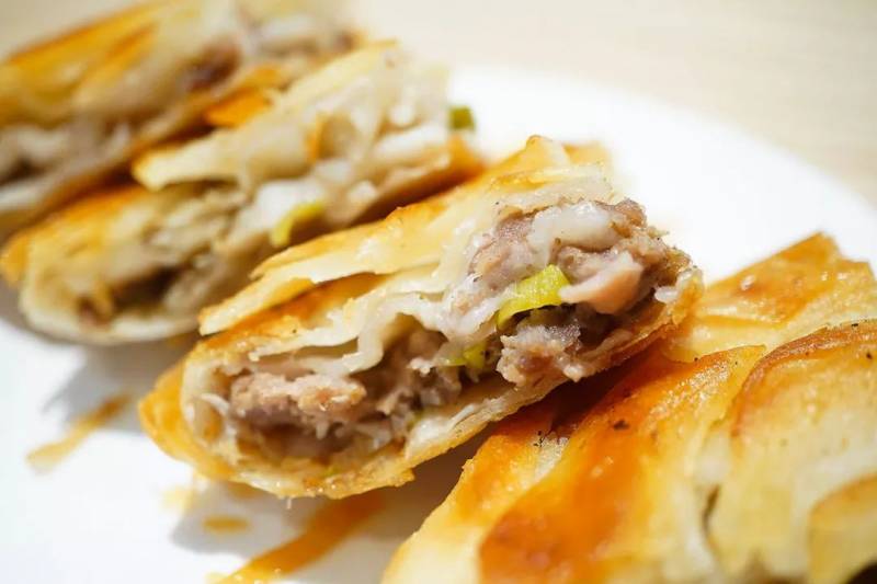 炸得香酥的表皮,裹着满满的牛肉和香葱