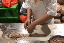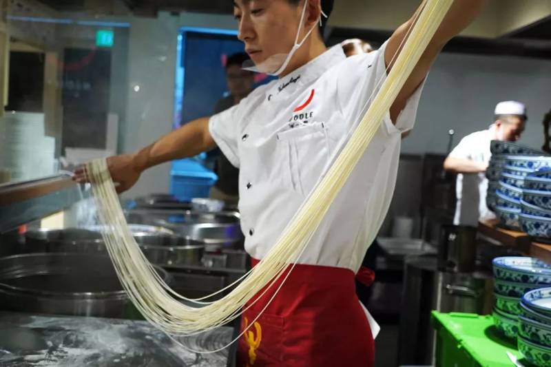 拉面的过程像一场魔术表演,抻拉面的两端,面细而不断,十分考验技术