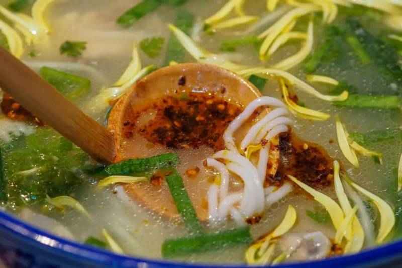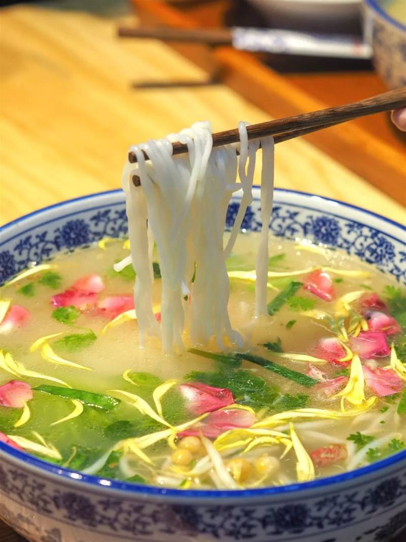 菊花入菜的做法,在我国拥有多年的历史,菊花气味芬芳,具有食疗的功效,清热解毒。云南被称之为花城,撒上花瓣的米线更能凸显出云南的特色。