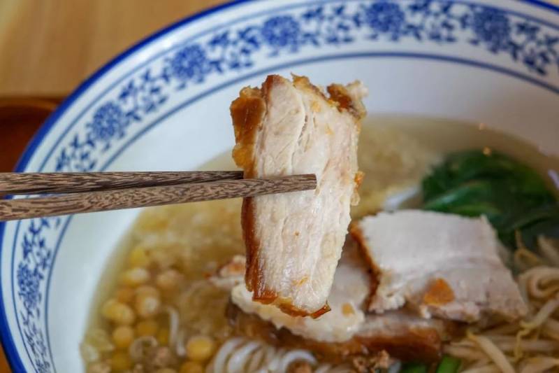 除了汤底之外,这里的烧肉绝对是亮点。炸至金黄色的表面略带嚼劲,肉放入汤里面之后吸满汤汁,肉用的是五花肉,所以肉质不会过柴。