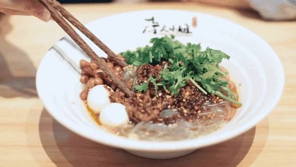 还有这一碗看似简单的酸辣粉,很多人试过后都直呼好吃。顺滑的粉搭配自制的杂酱和香脆的花生。整碗的酸味和辣味搭配的非常平均,酸辣十足,值得一试。
