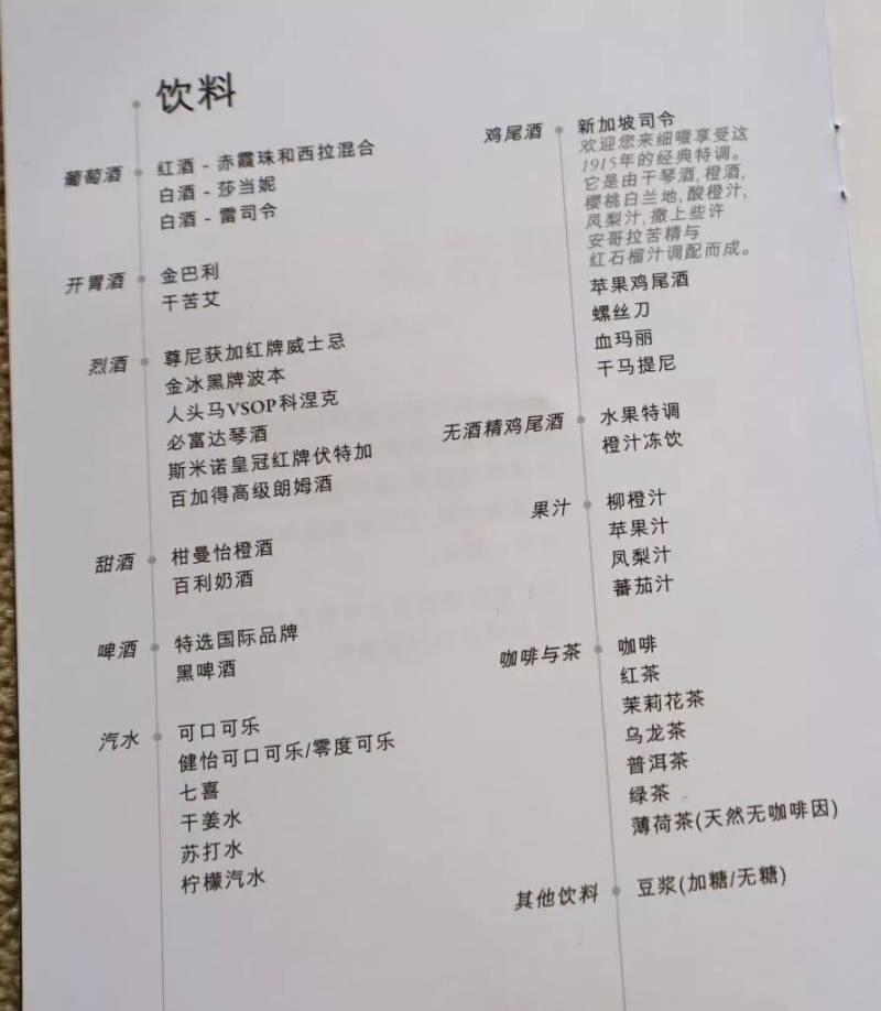 没想到新航连经济舱的饮料都有这么多