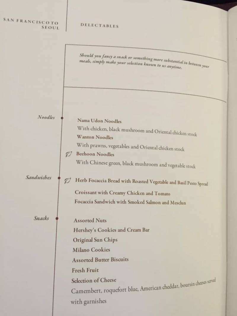 先来随意感受一下经济舱的菜单