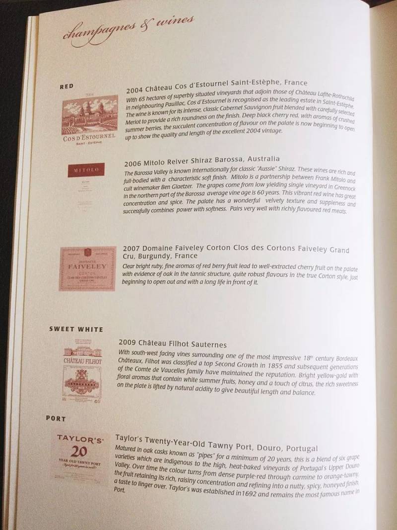 新航头等舱菜单