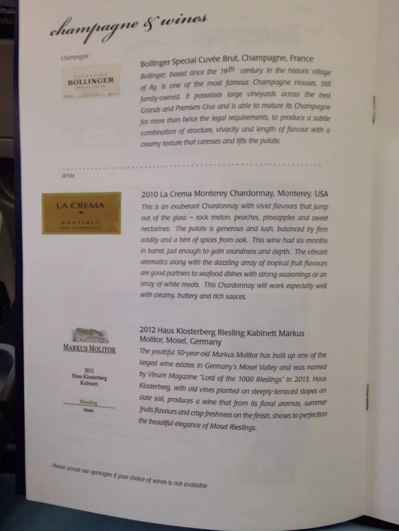 商务舱的菜单长这样: