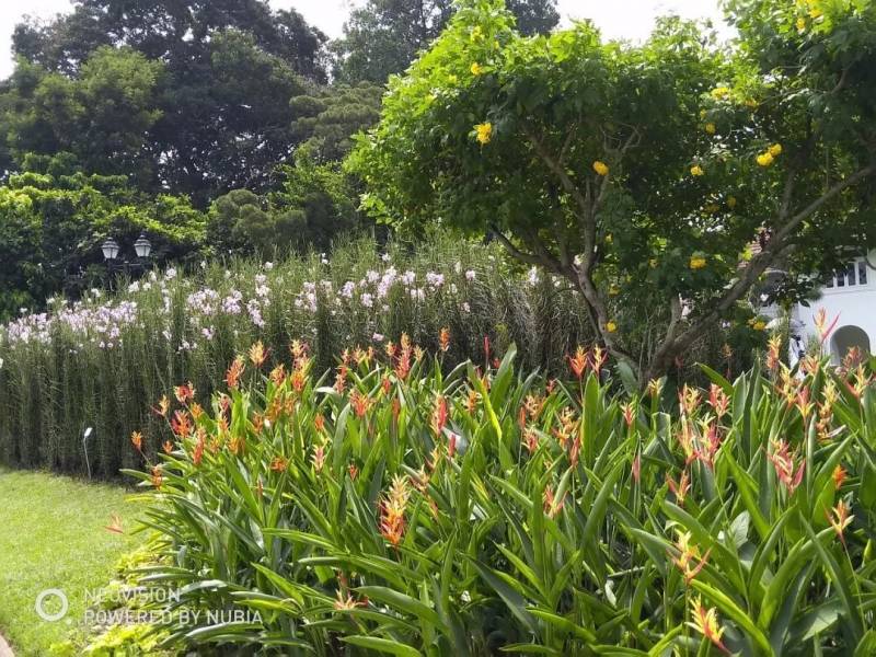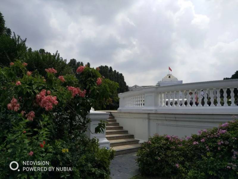 可那终究是总统府啊,眼前的莲花可不是普通的莲花,那得叫“总统府的”莲花;胡姬花可不是普通的胡姬花,那得叫“总统府的”胡姬花;就连草坪也不是普通的草坪,那得叫“总统府的”草坪,平白添了几分贵气。