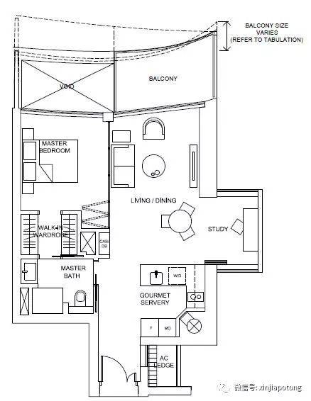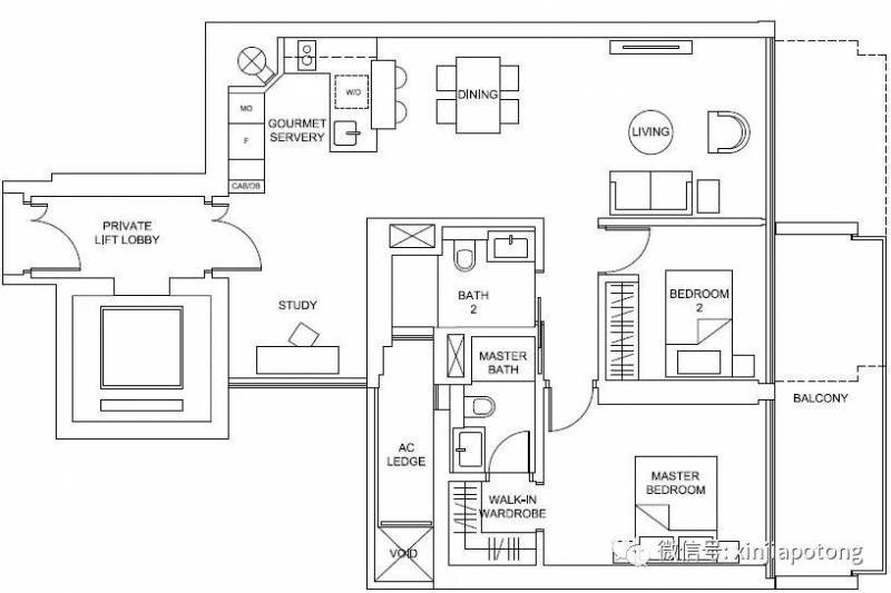 2+书房,108平方米/1163平方英尺,自带私人电梯,私密性好和显档次。价格为新币253.4万起,单价只需$2178/平英英尺起