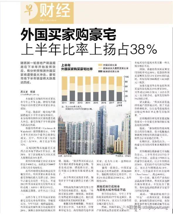 据联合早报报道,外国买家够豪宅上半年比率上扬,占比38%(引自联合早报),可见外国买家青睐新加坡豪宅市场。