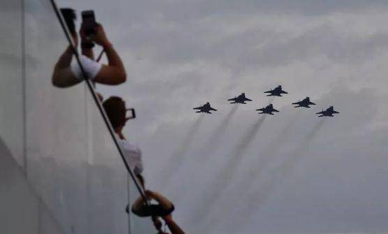 紧接着是战斗机震耳欲聋的飞过,大家拿起手机赶紧记录下战斗机这么靠近的时刻。