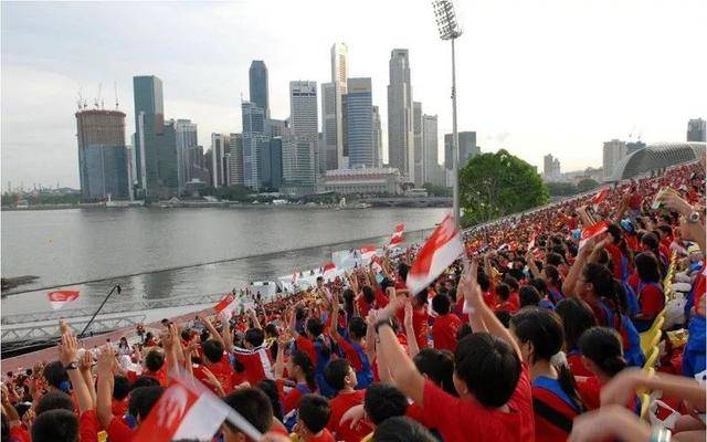 这是属于所有新加坡人的节日,下午5点,抢到票根的小伙伴们已经陆续进场就座,没抢到票的就在附近找一处能凑热闹的,还有许多人预订了金沙滨海湾附近的酒店和高层餐厅,都是为了一睹节日的风采。