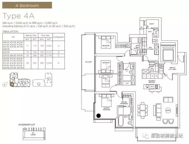 4)四卧室,使用面积190-209平方米/2045-2250平方尺,售价从$5,325,000起($2,604新元/平方尺)。