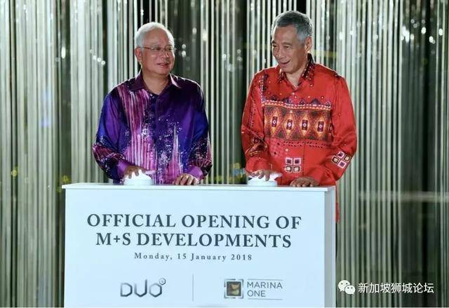 新加坡总理李显龙和马来西亚总理纳吉共同出席项目的设计揭幕典礼