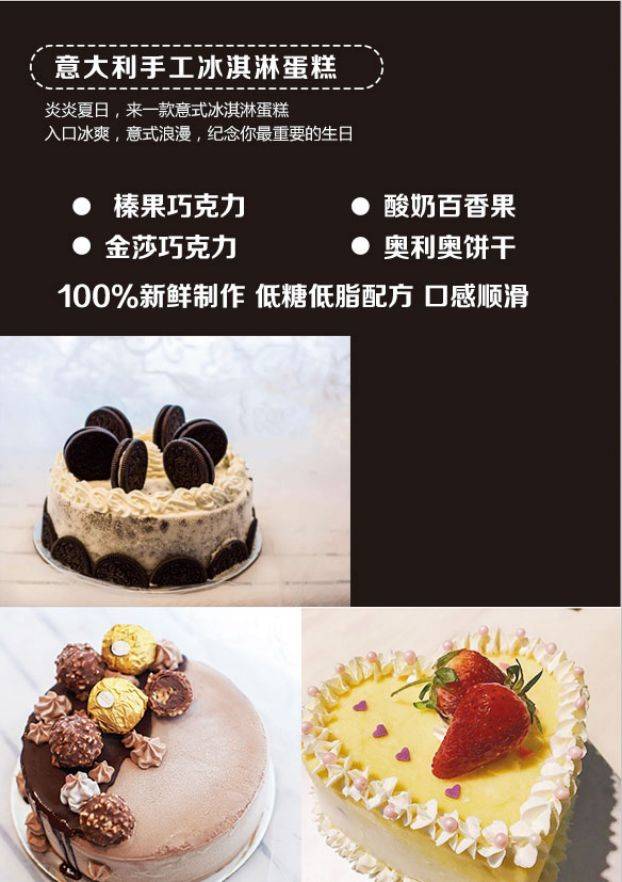 有杯子蛋糕、慕斯蛋糕、冰淇淋蛋糕