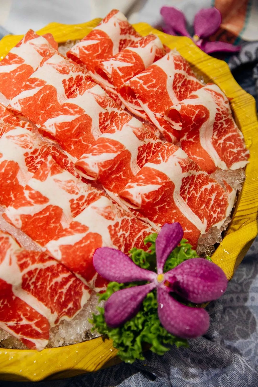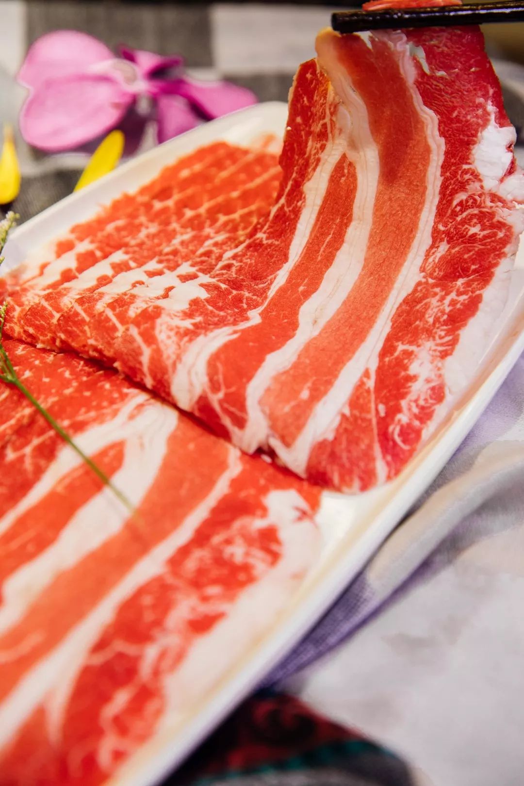 刚刚烫煮好的牛肉散发出诱人的清香,
