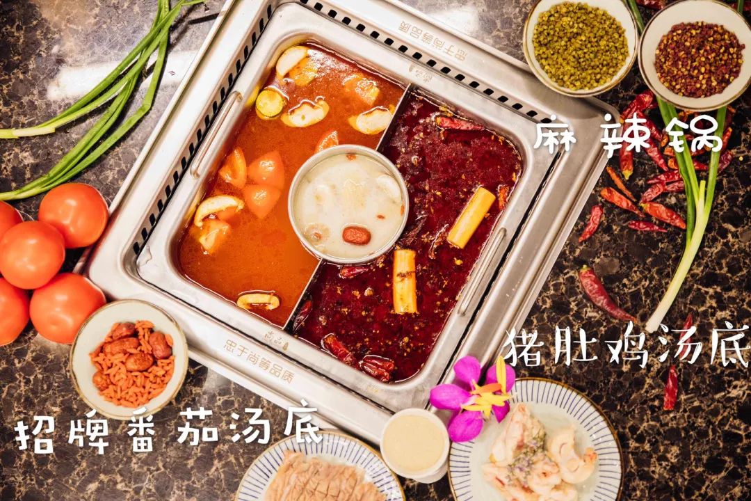 尚品的三味锅一次享受到三种风格的汤底,