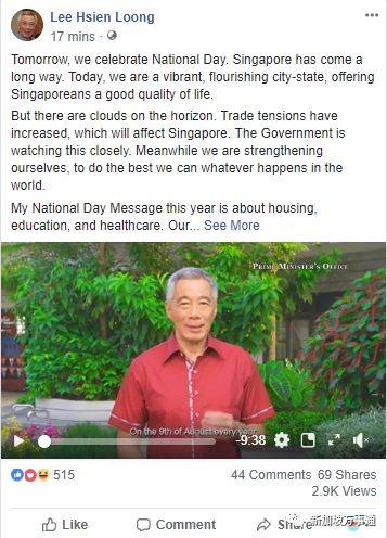 大家都知道明天就是新加坡的国庆日了!就在今天新加坡总理李显龙发表了国庆致辞!