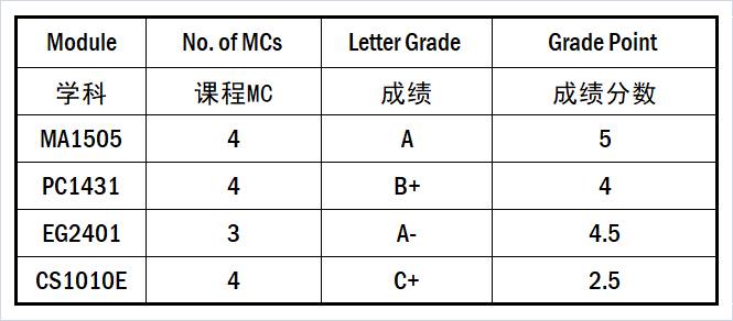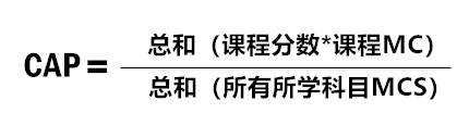 CAP成绩计算,首先算出所学各科目MC乘以科目成绩的和,然后除以MCS的总数。