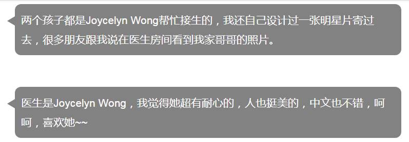我现在怀孕五个月,John Tee是我的产科医生,目前我觉得他很好而且有经验。他总是匆匆忙忙的,也是因为他有很多病人要看。他的队也是最长的……有时候他会开开玩笑缓解我的紧张。