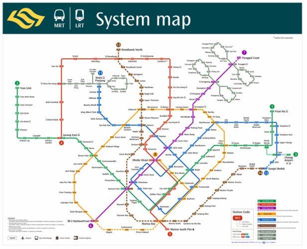 新加坡公共运输还挺发达的,主要是地铁和公交。地铁有5条已经通车运行的线路:南北线(红线)、东西线(绿线)、东北线(紫线)、环线(黄线)、滨海市区线(蓝线)。地铁线沟通南北,贯穿东西,基本上覆蓋了新加坡各个区域。地铁的首班车大都在05:30前后,末班车在24:00前后。如果你的交通卡里的余额少于3新币时,就不能进地铁站了,只能去地铁站购票机器那边充值才可以进站乘坐地铁。