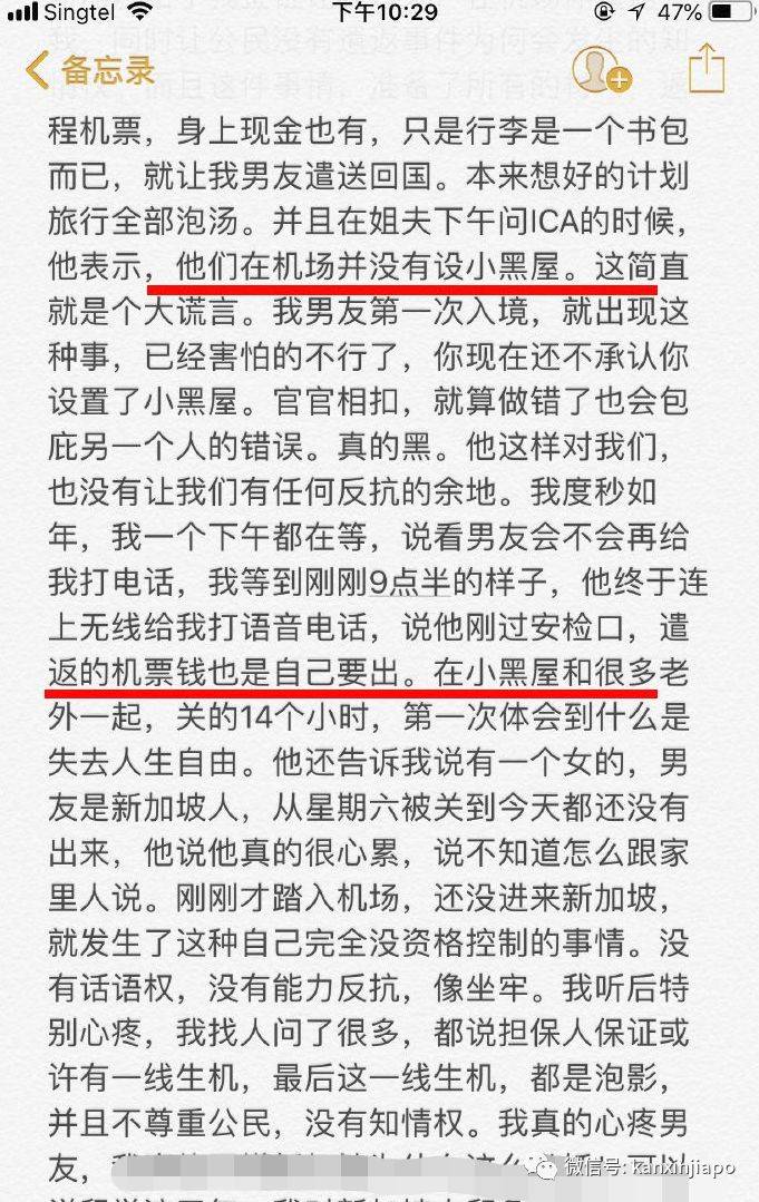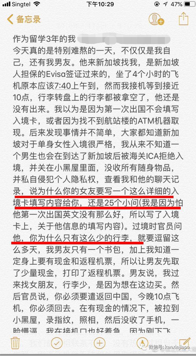 入境新加坡的人,听过传说中的“小黑屋”。今天,又有一位网友说她男友从中国来新加坡入境时被遣返的经历。关小黑屋和遣返毕竟都是小概率事件,分享出来,大家讨论,希望帮助各位尽可能避开“踩雷”。